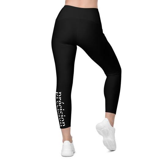 Legging Taille Haute, Coupe Croisée & Poches - écrit blanc