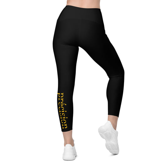 Legging Taille Haute, Coupe Croisée & Poches - écrit OR